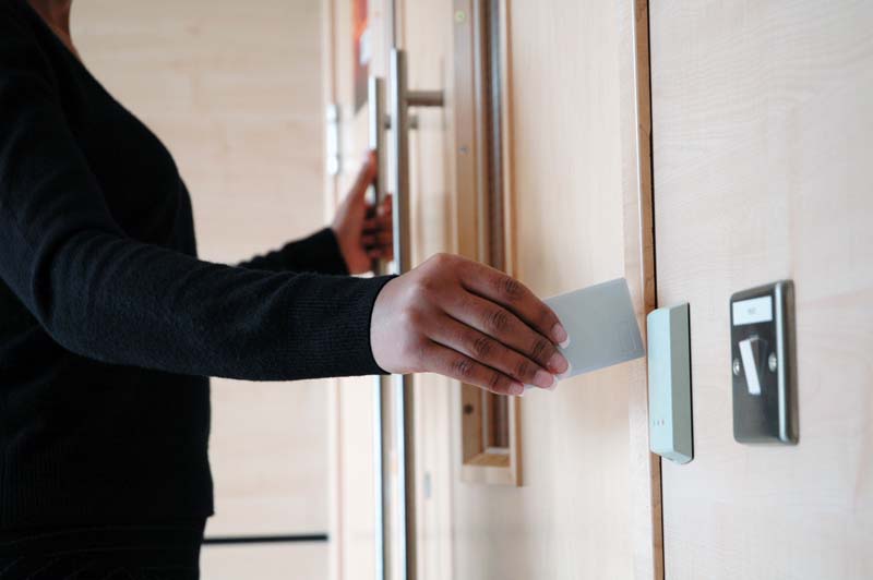 Двери оснащены специальными электрозамками, которыми управляет контроллер. Двери можно открыть с помощью карточек, брелоков, по отпечатку пальца или скану лица, в зависимости от установленного считывателя.
